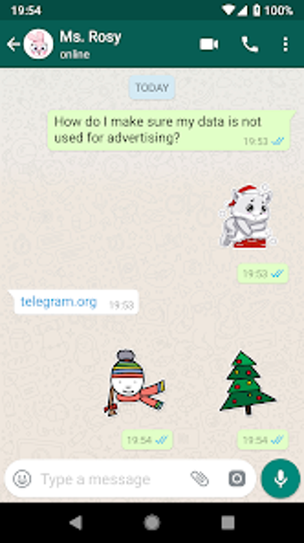 علاوة على ذلك، يمكنك إضافة واحدة من العديد من حزم الملصقات إلى مراسل واتساب الخاص بك. يقدم التطبيق أكثر من 60 حزمة من الملصقات بموضوعات مختلفة. تحتوي كل حزمة على صور لموضوعات مختلفة، والتي تم تصميمها لتكون سهلة التعرف عليها. علاوة على ذلك، يتضمن التطبيق أفضل الملصقات الأكثر شعبية للموسم، والتي تكون جاهزة للإرسال.